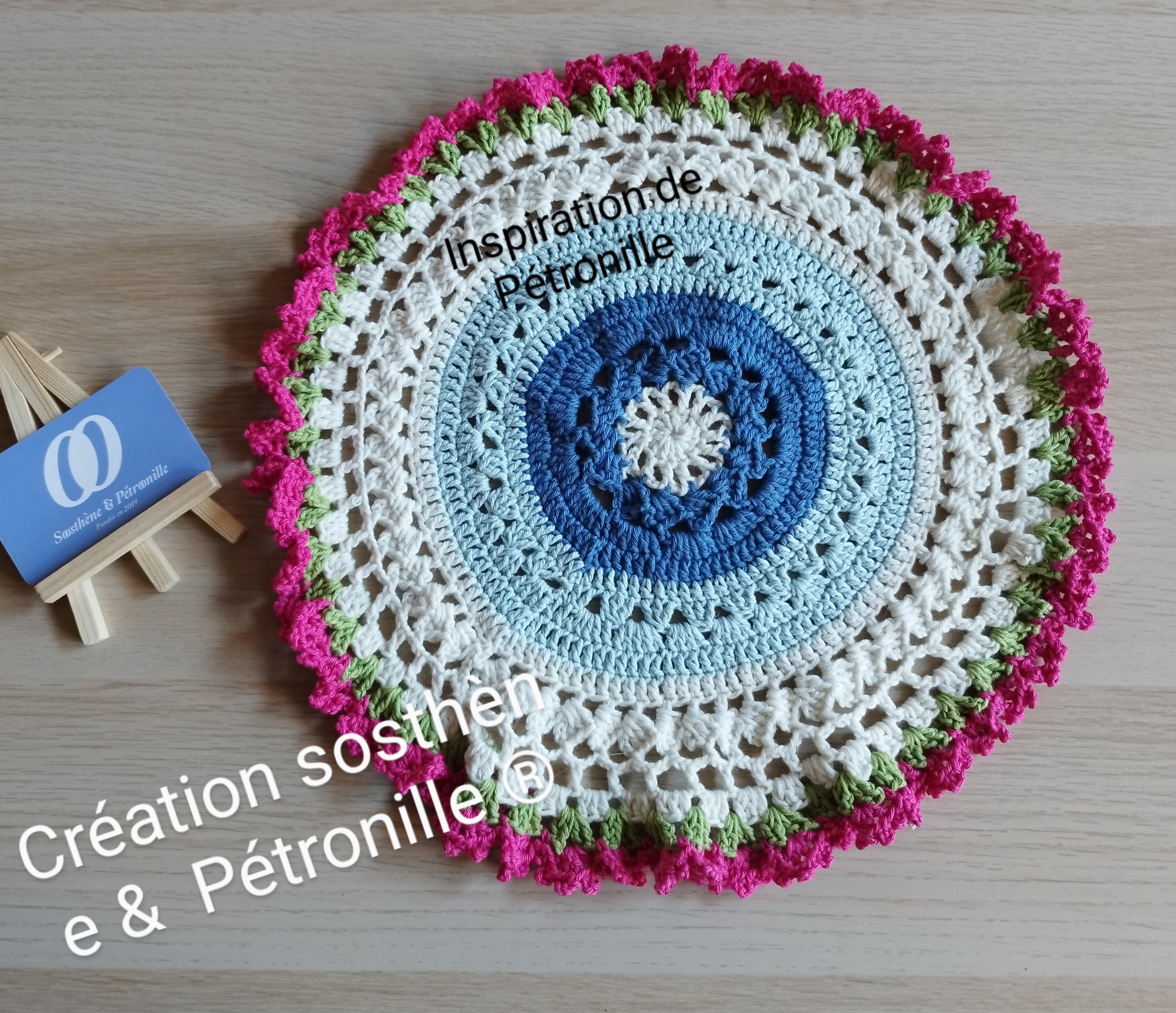 Le napperon Pep's de l'inspiration de Pétronille ® et un rassemblement de points quelle c'est faire.