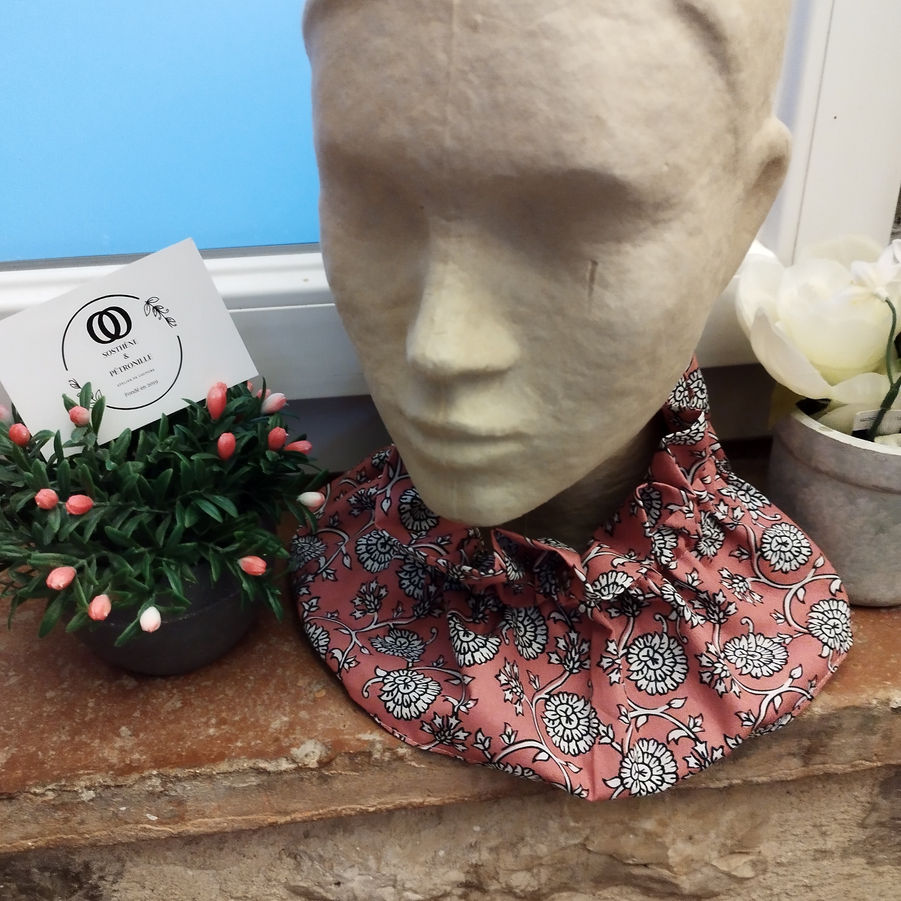 Col Victorien fleurs indienne rose foncé- taille standard avec élastique