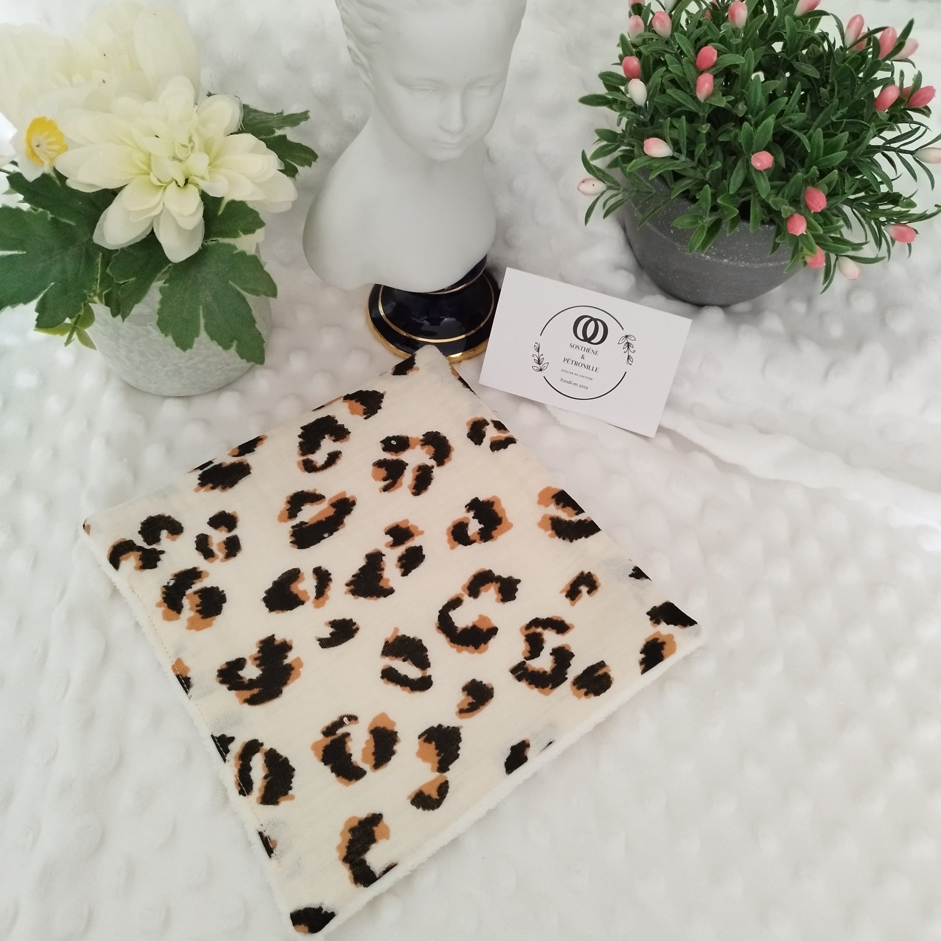 Un je face En double gaze ou en tissu coton imprimé et une face éponge bambou douce.