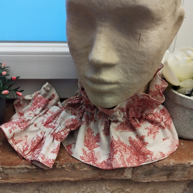 Col Victorien toile de Jouy rouge- taille standard avec élastique
